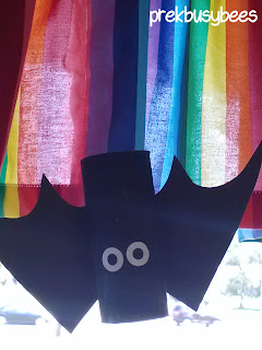 We had a bat play table with lots of toy bats, and we made bats to hang up on our curtains. Take a peek in our classroom, and check them out!