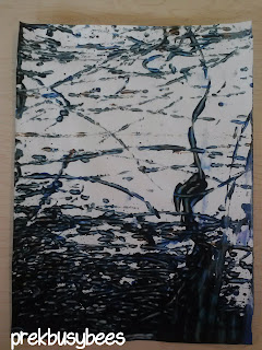 They were created using a cylindrical container, paper, marbles and 2 colors of paint. After all that was placed in the container, the kiddos shook it up! I let them shake it for as long as they wanted. Some were finished in just a few seconds, and the others shook for a few minutes. They all turned out great!